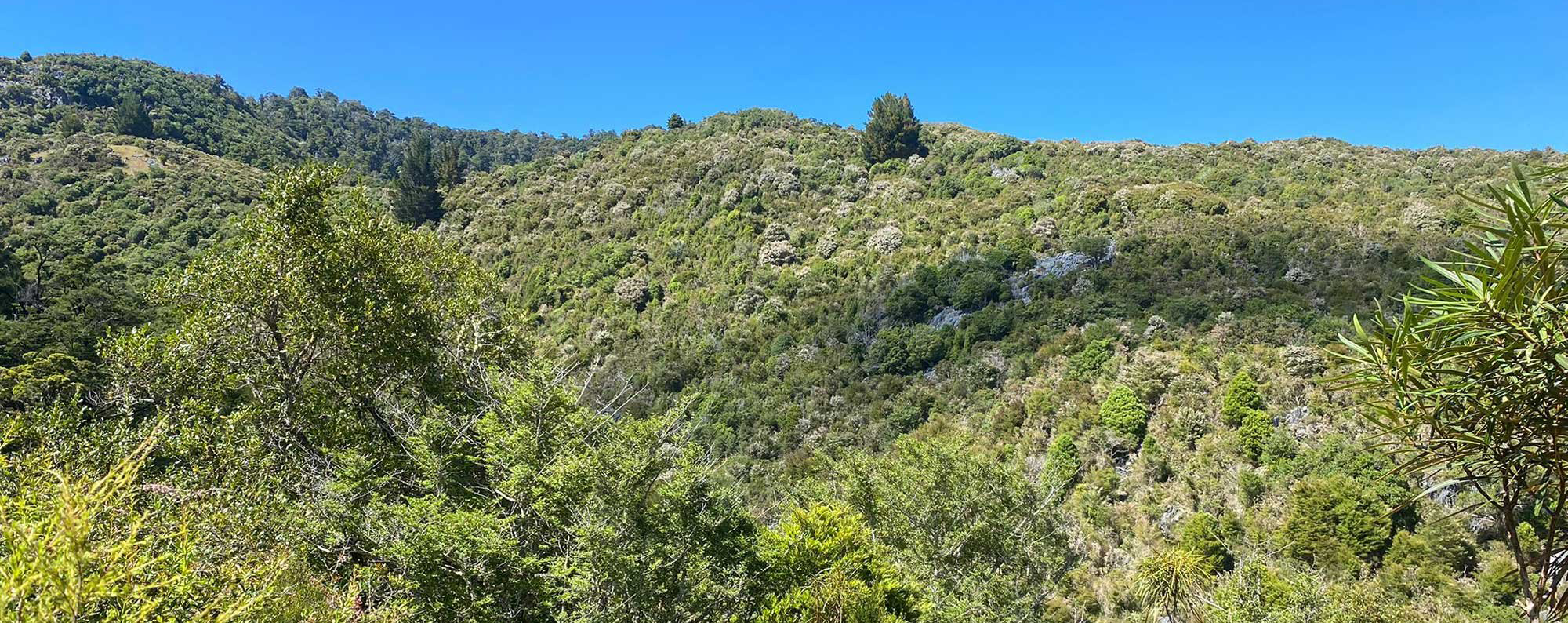 The project started life in 2021 when Angus purchased an excessively steep 135ha site comprising mainly naturally regenerating farmland on the eastern slopes of the Takaka valley. Most of the property was over 40 degree slopes and with very difficult access. It was only suitable for carbon sequestration, but most had started regenerating before 1990 so only 42ha was eligible for registration in the ETS.