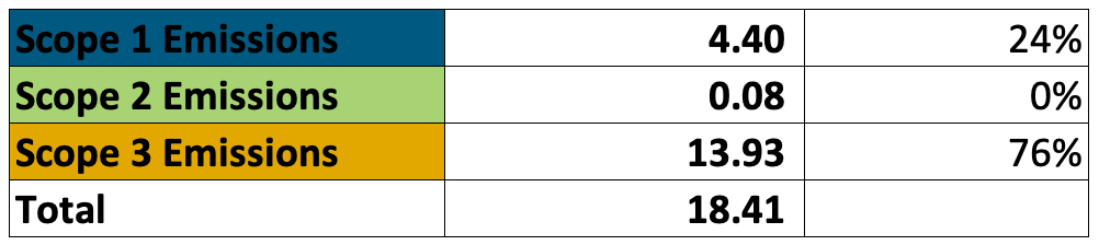 Scope 1 and 2 emissions are our direct emissions. Scope 1 emissions arise from our stationary fuel use and our company vehicles. Scope 2 emissions arise from our purchased electricity.