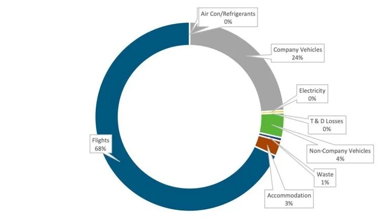 Our main sources of emissions (see figure below) are linked to flights (68%) and company vehicles (24%). Other activities such as non-company vehicles, waste and accommodation amount to just 8% of our total emissions.