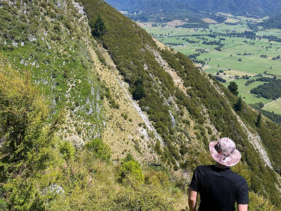 The project started life in 2021 when Angus purchased an excessively steep 135ha site comprising mainly naturally regenerating farmland on the eastern slopes of the Takaka valley. Most of the property was over 40 degree slopes and with very difficult access. It was only suitable for carbon sequestration, but most had started regenerating before 1990 so only 42ha was eligible for registration in the ETS.