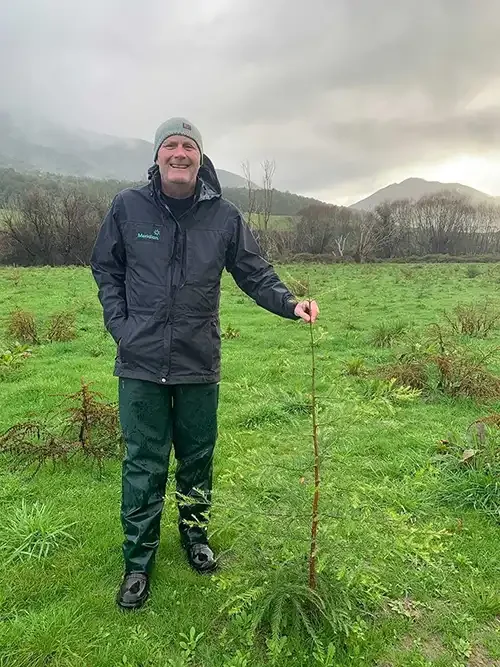 Meridian Energy Limited are planting trees throughout Aotearoa to reduce their carbon impact. The plan is to have 1.5 million seedlings in the ground over the next 5 years so that they are able to offset their operational emissions by half by 2030.
