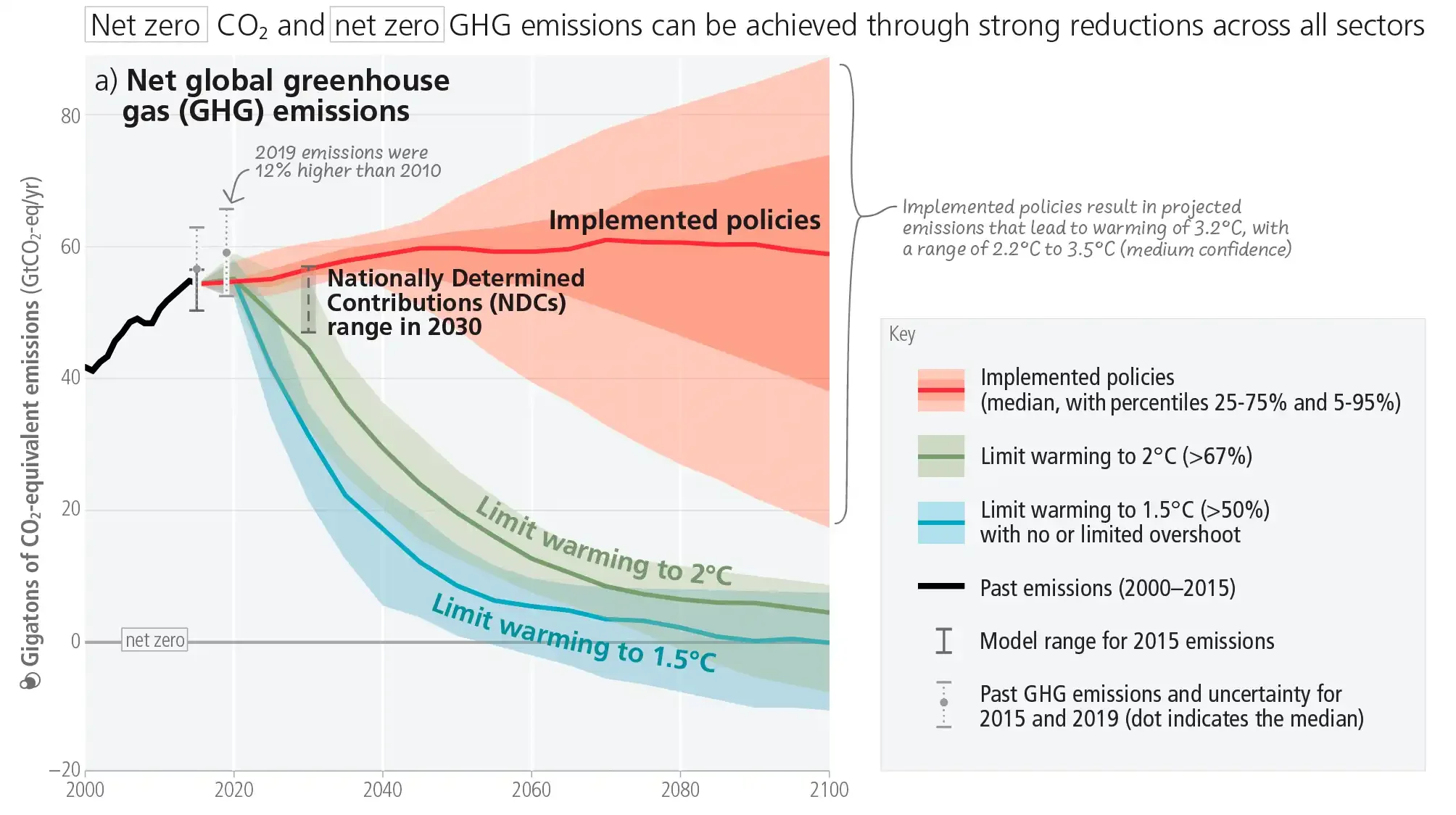Limiting warming to 1.5 degrees C and 2 degrees C requires rapid, deep GHG emission reductions.